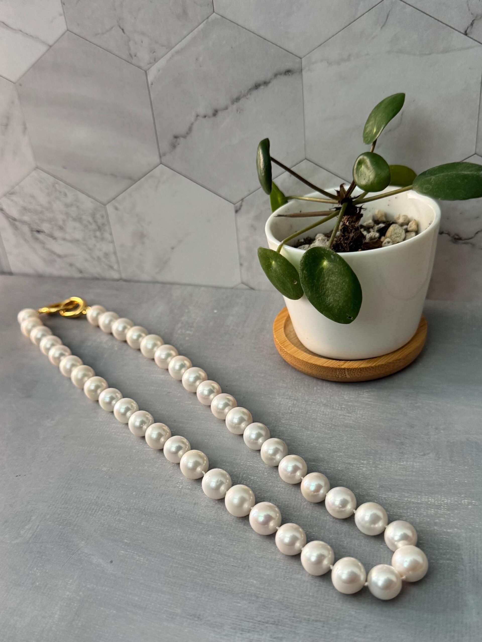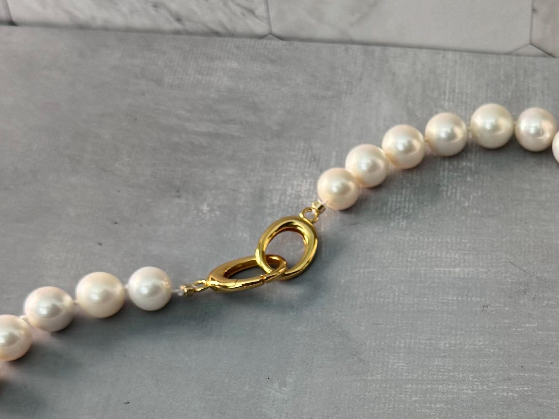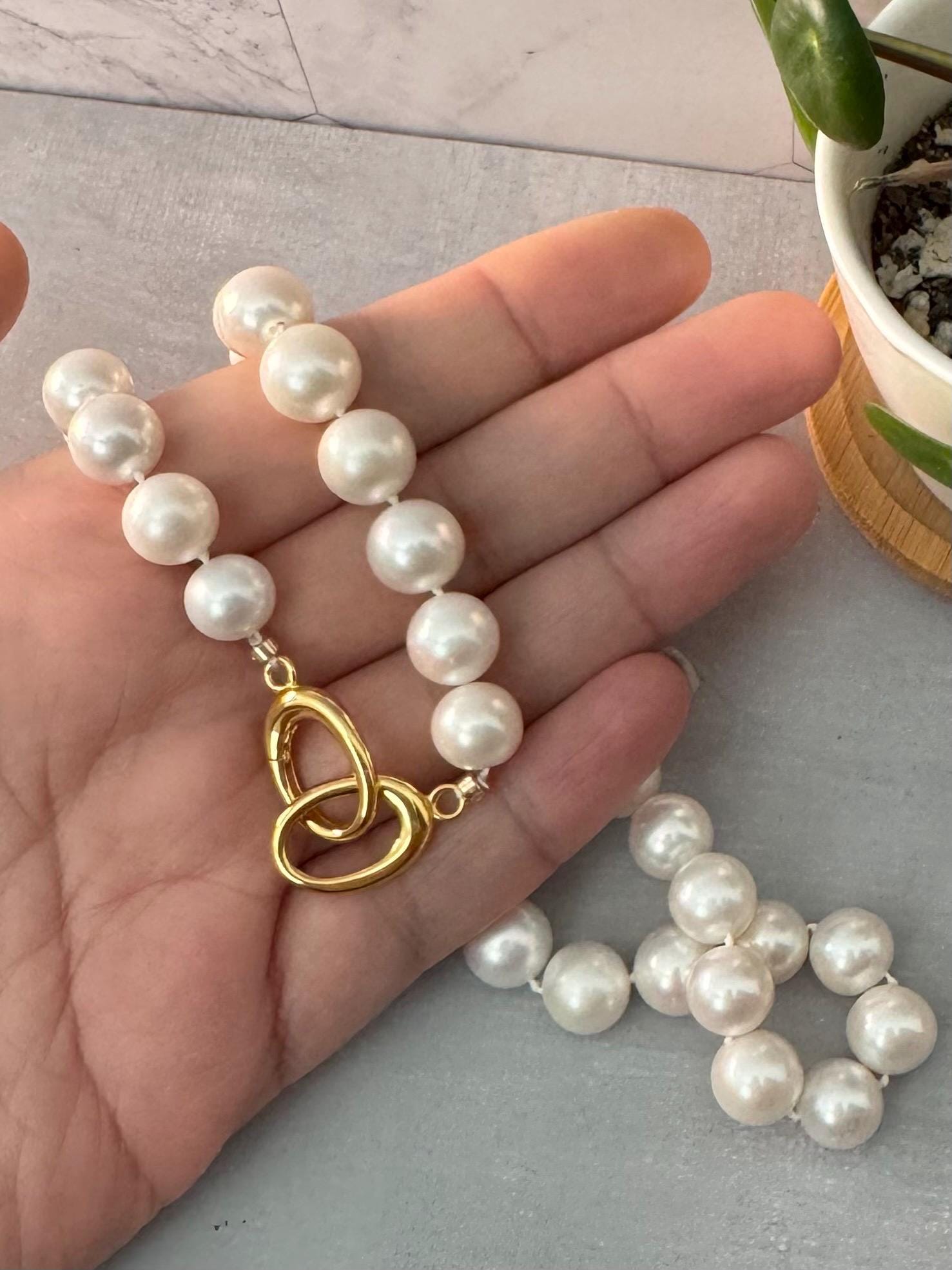 Crafted with large, luminous Edison pearls and hand-knotted on 100% silk, this necklace blends classic elegance with artisan quality. Each pearl is individually spaced and secured, creating a graceful drape and a premium finish that reflects the time and care behind every detail. It’s finished with a solid 925 gold-plated push clasp for lasting elegance.