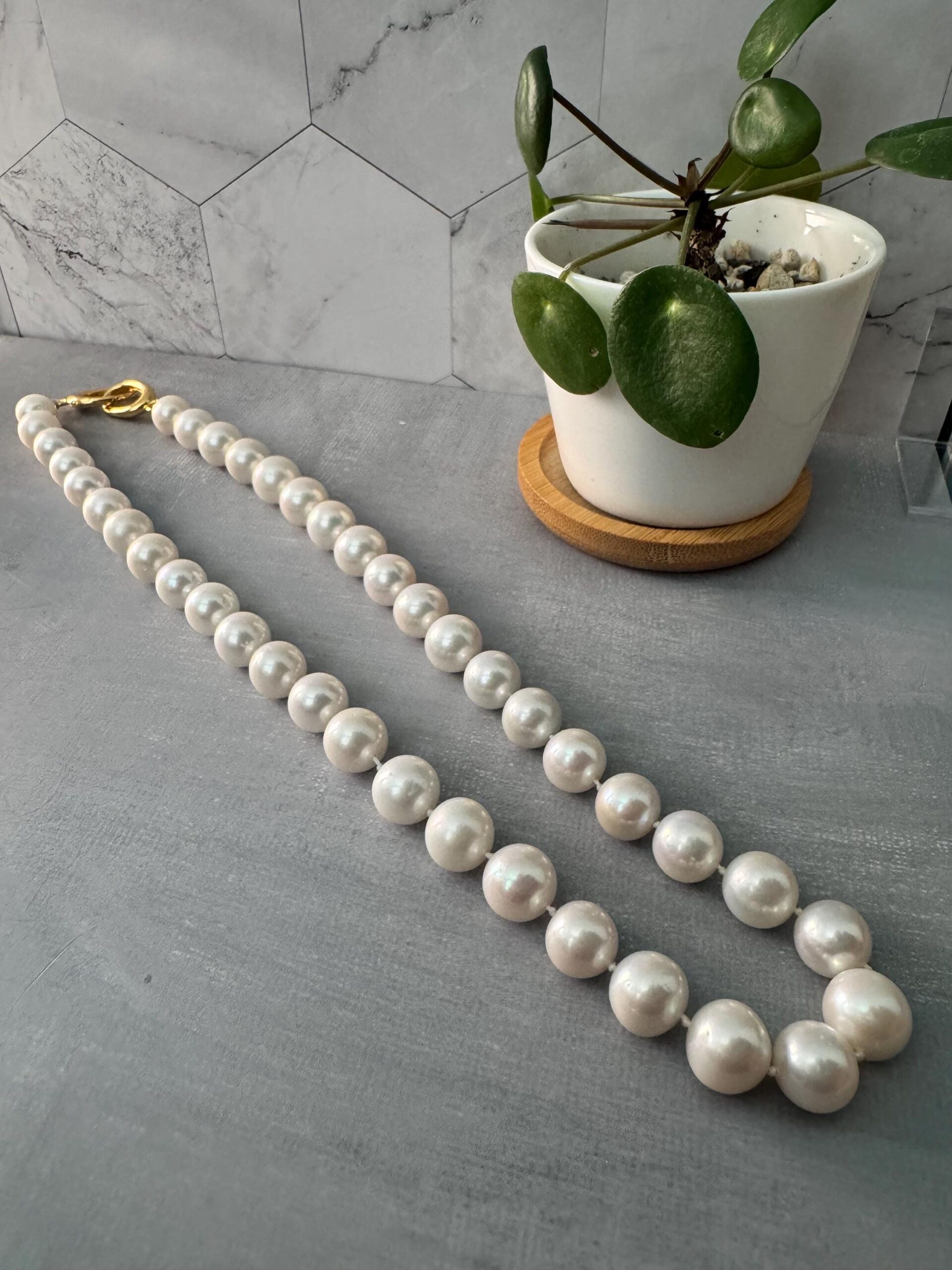 Each pearl in this strand has been selected for its natural glow and full shape, offering a modern yet timeless take on a classic style.