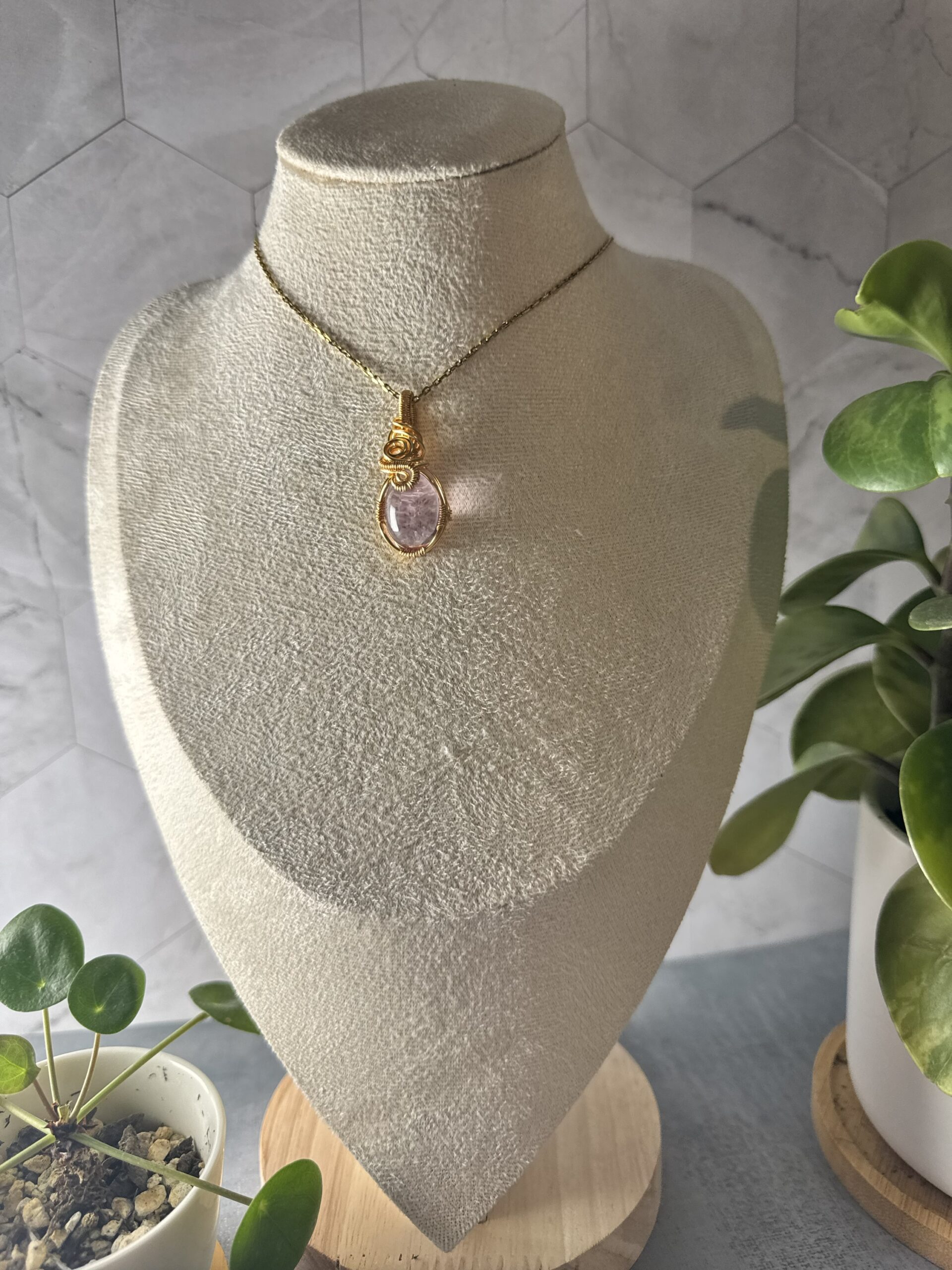 Style: Wire-wrapped gemstone pendant