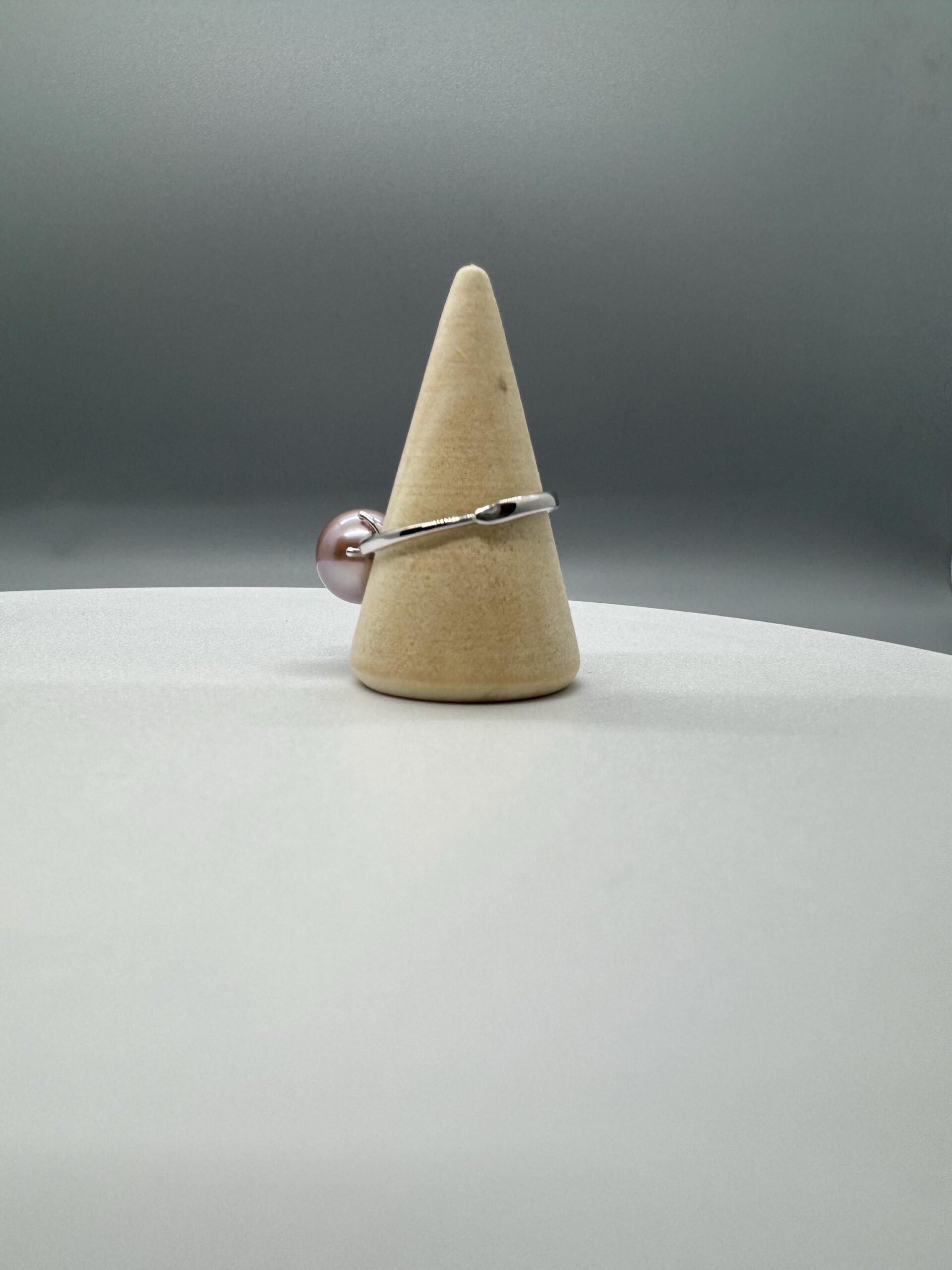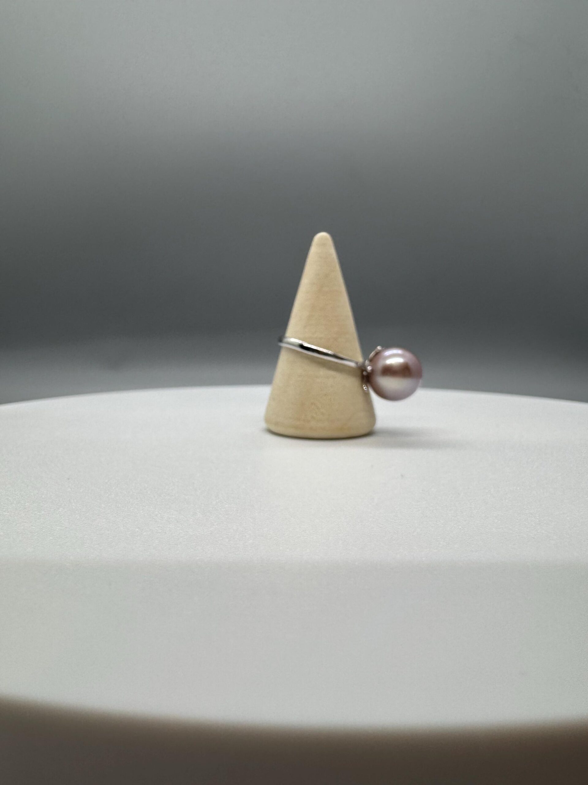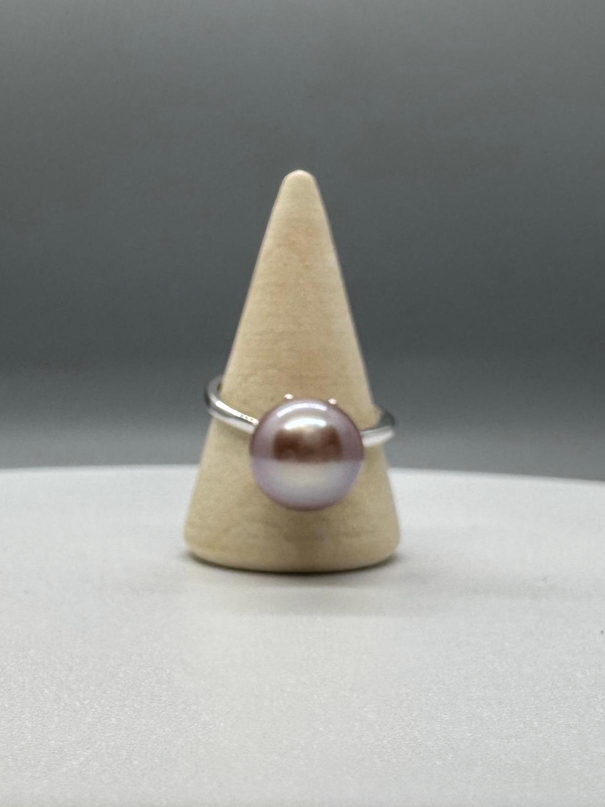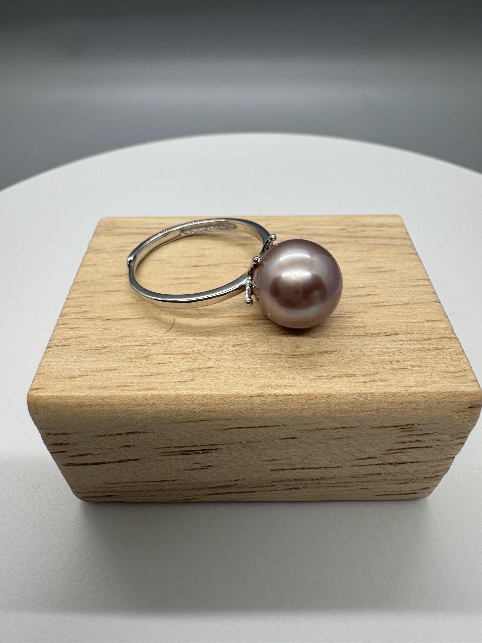 This ring is made of S925 sterling silver. It has a Deep Purple freshwater pearl mount it in the middle. The setting looks like a flower with the pearl in the middle.