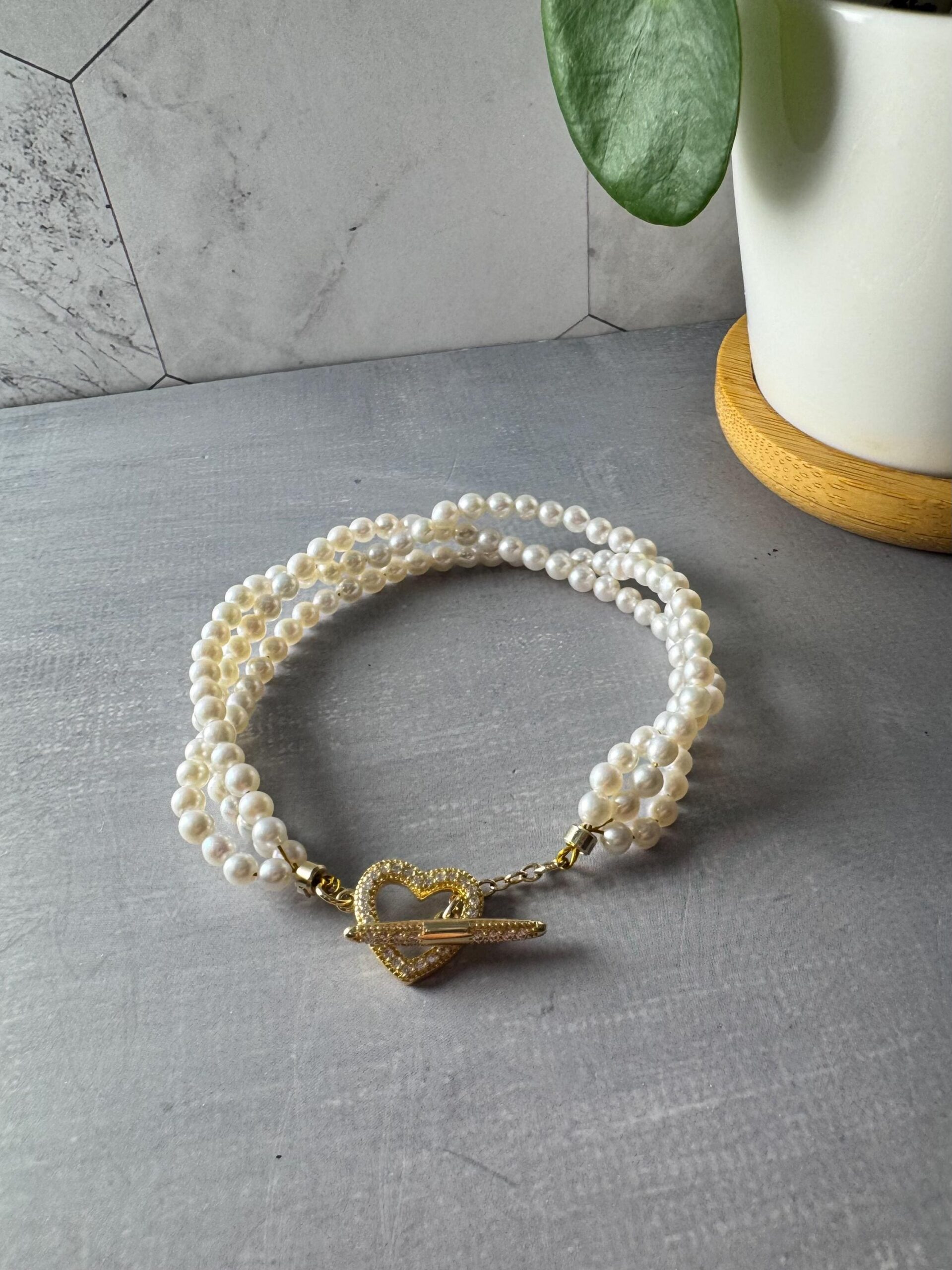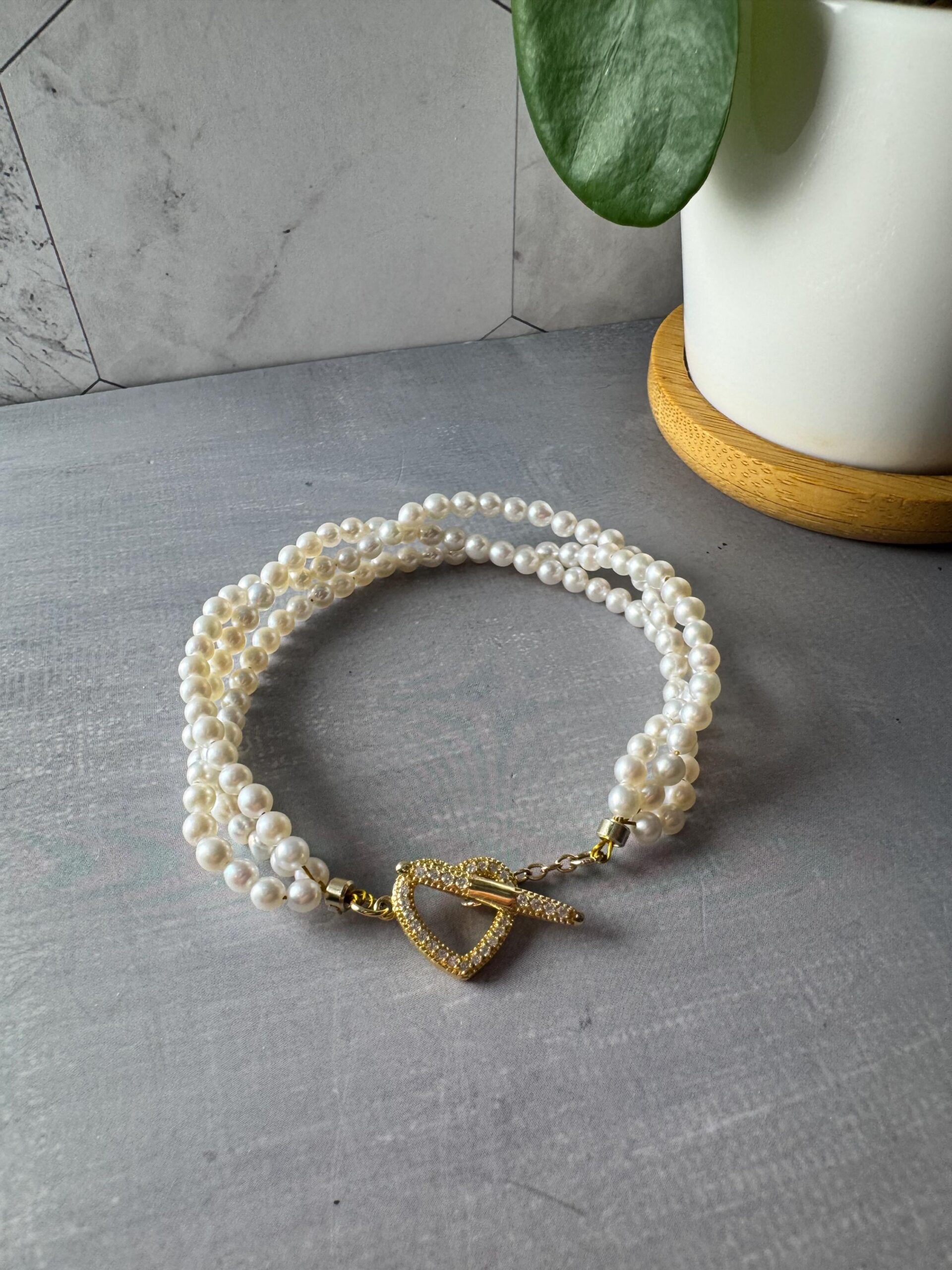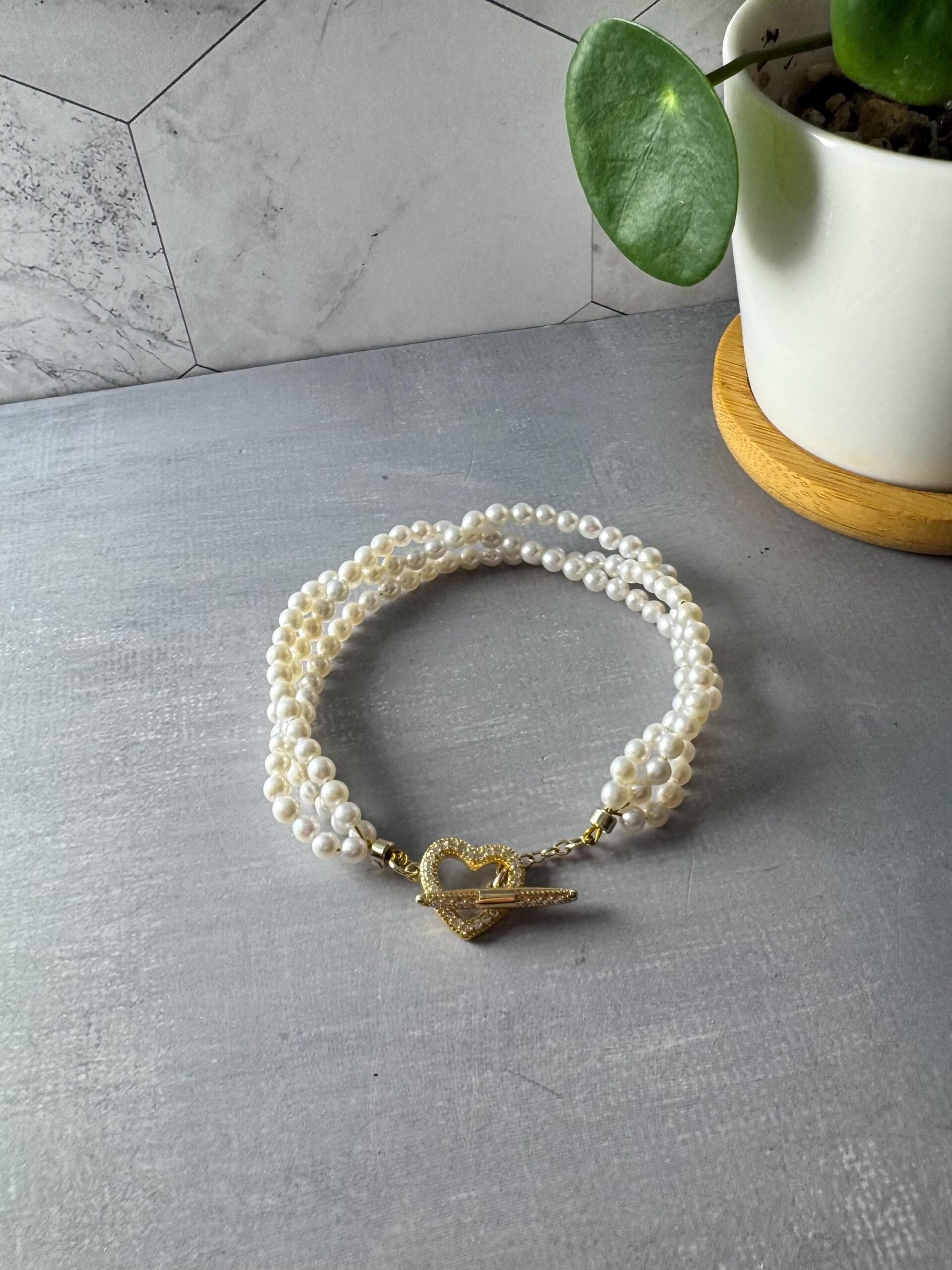 The centerpiece is a sparkling heart-shaped toggle clasp, paved with cubic zirconia and made of solid sterling silver (S925) plated in 18K gold. It adds both charm and secure closure.
