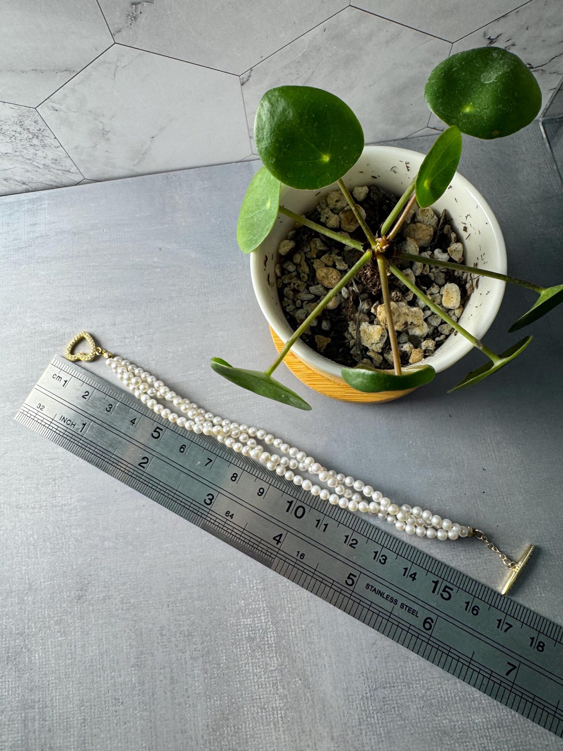 This delicate bracelet is designed with petite wrists in mind, featuring three braided strands of luminous 3mm freshwater pearls. Each strand is hand-threaded and carefully woven to create a graceful, full-bodied silhouette.