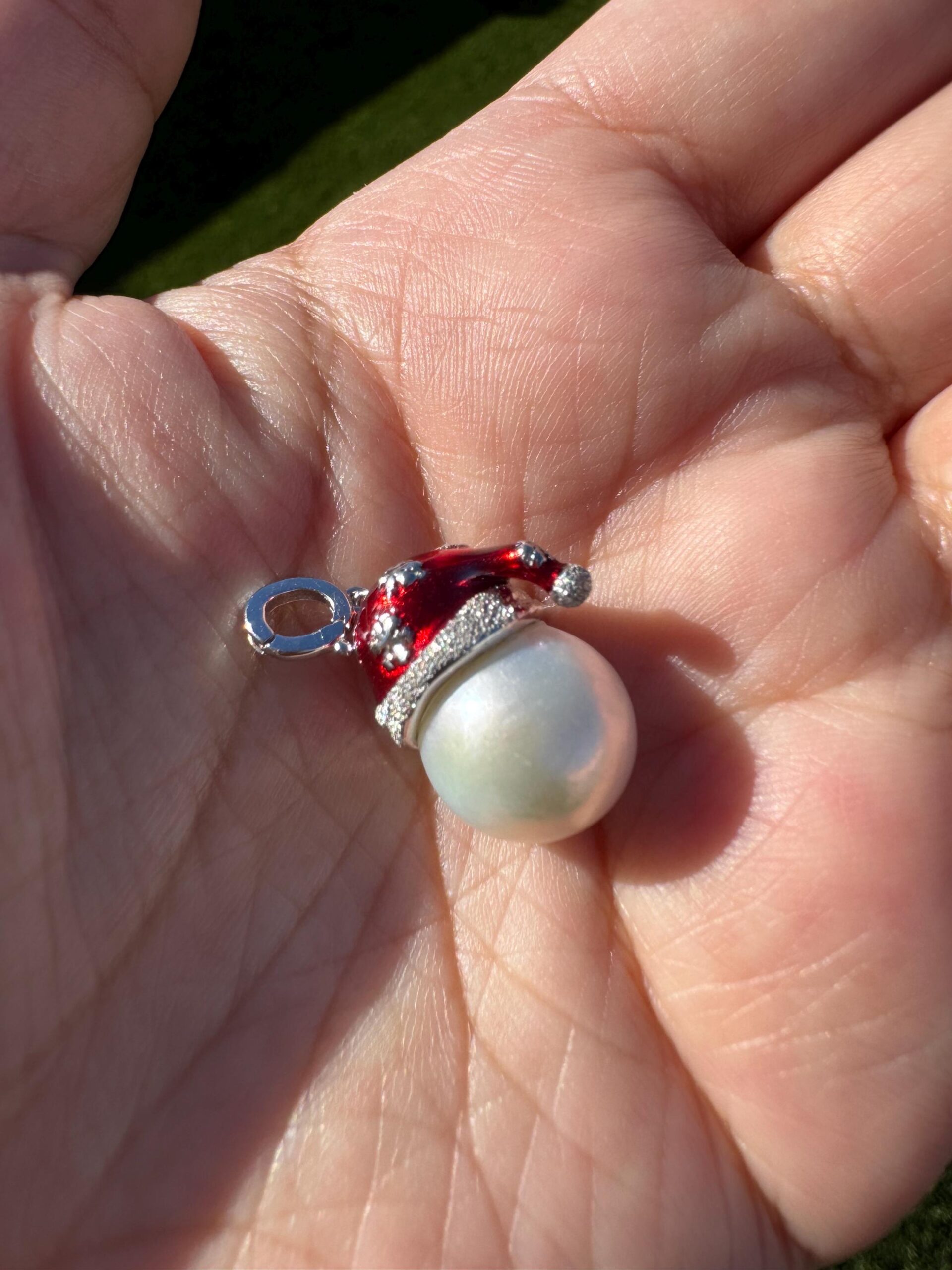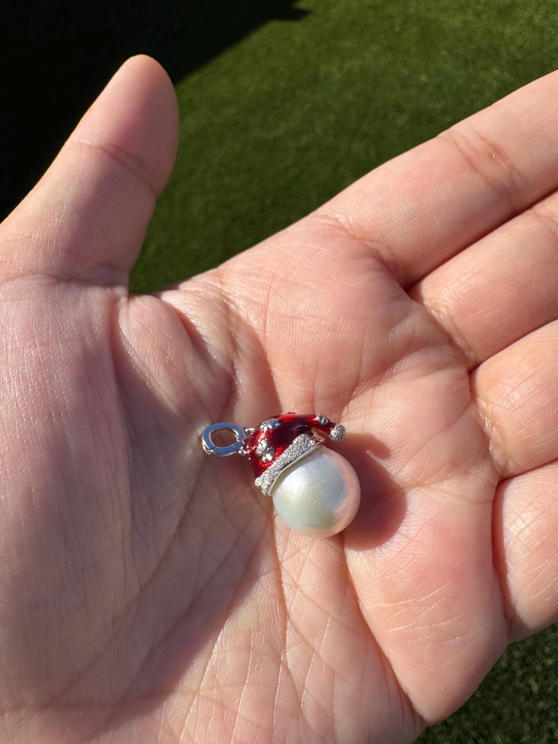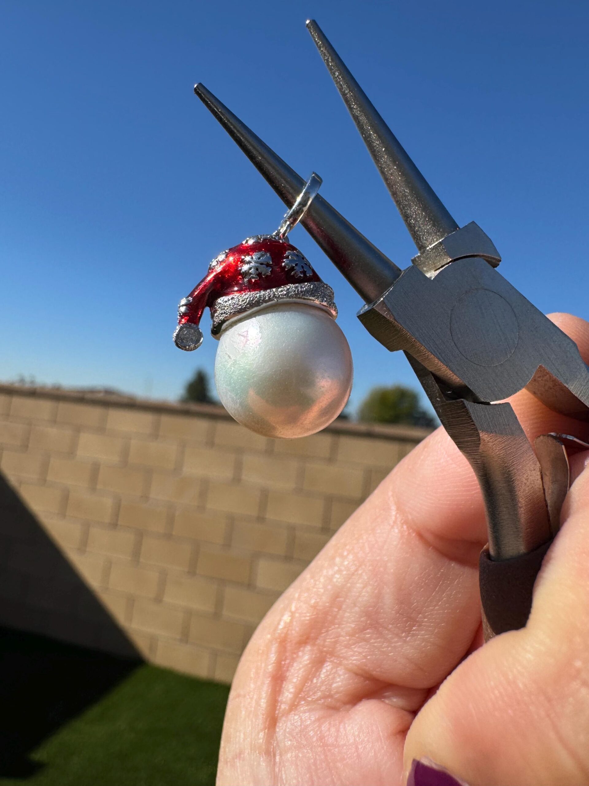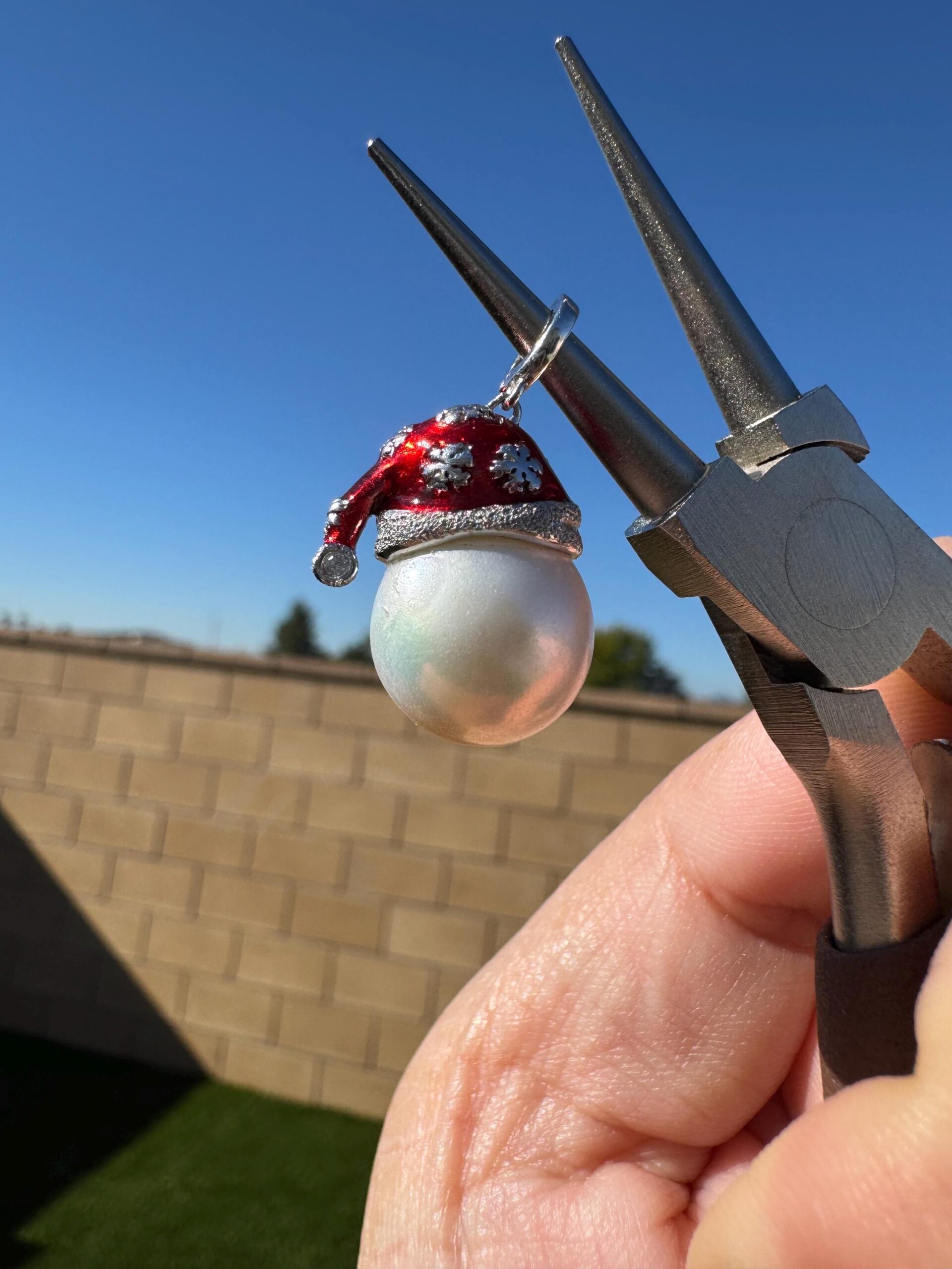 This Santa hat pendant is so adorable and so much fun! When finding a pearl for it, I wanted to make sure that it still gave the feel of Christmas. When I found this white pearl I knew it was right. It shines with a little bit of frost. It reminds me of snow as well as Santa’s beard. My favorite part about this pendant is that it sparkles and it’s fun without it being over the top.